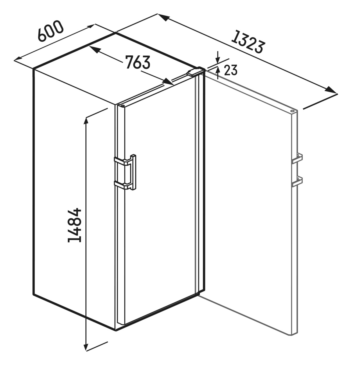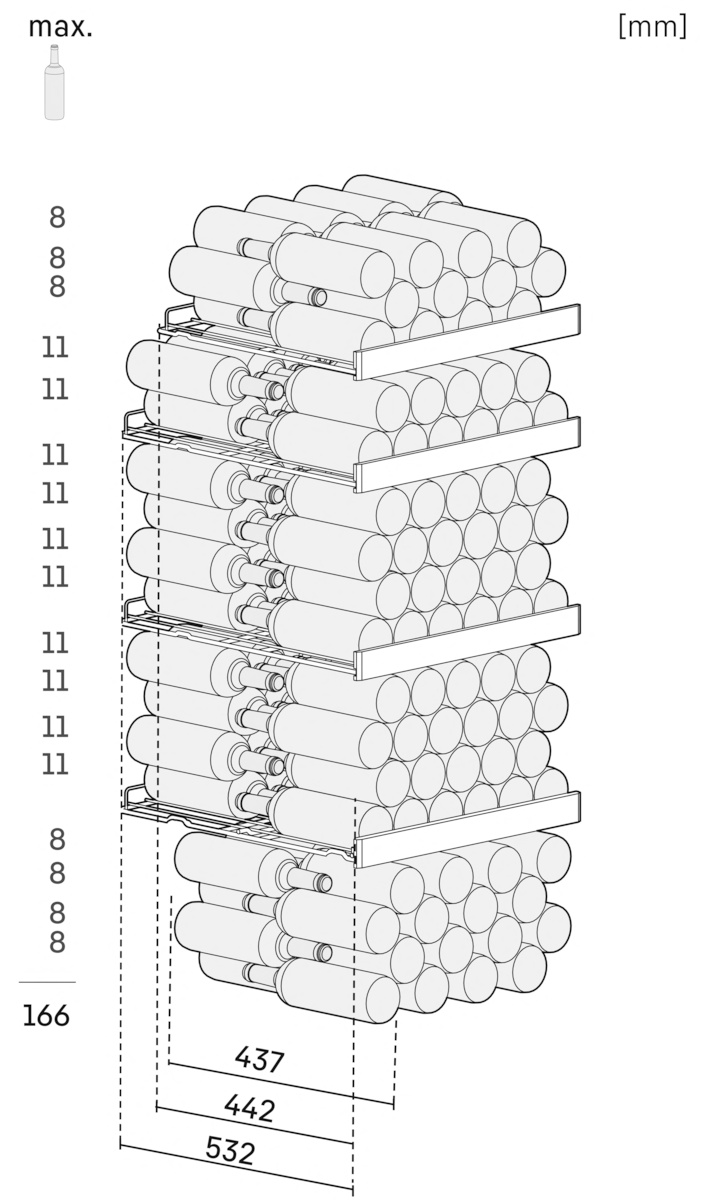 GrandCru, глухая дверь, высота 148,4 см, ширина 60 см, максимальное количество бутылок Бордо (0,75 л): 166 бутылок, жесткая ручка, черный цвет