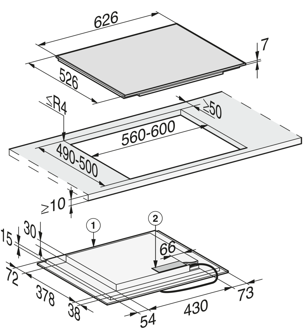 4 зоны приготовления, вкл. 1 зону нагрева PowerFlex